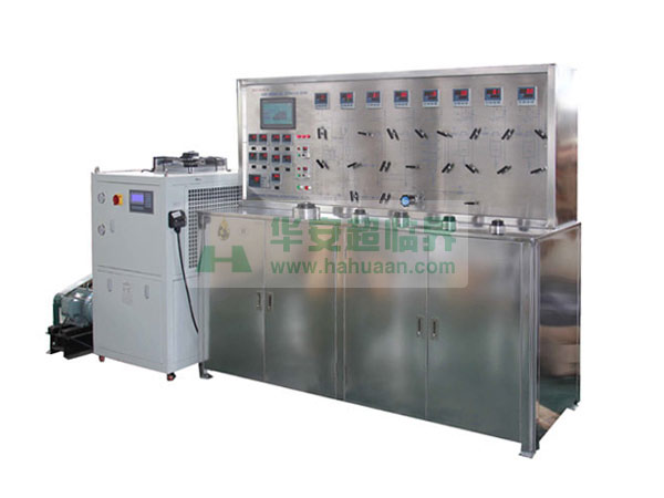 該裝置采用CO2作添加劑,主要應用:食品、醫藥、香精、香料等有效成份的提取,精細分離。裝置由萃取釜、分離釜、精餾柱、CO2泵等組成:萃取釜為0.5-50L/32-50Mpa固液兩用,CO2循環使用。接觸流體的容器、閥門、管路采用1Cr18Ni9Ti不銹鋼制作。